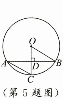 5. 如图,$\odot O$的半径$OB$为4,$OC\perp AB$于点$D$,$\angle B = 30^{\circ}$,则$AB$的长是 (