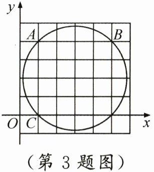 3. 如图,在平面直角坐标系中,点$A,B,C$的坐标分别为$(1,4),(5,4),(1,0)$,则以$A,B,C$为顶点的三角形外接圆的圆心坐标是 (
