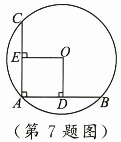 7. 如图,在$\odot O$中,$AB,AC$为互相垂直且相等的两条弦,$OD\perp AB,OE\perp AC$,垂足分别为$D,E$,若$AB = 4$,则$\odot O$的半径是 (