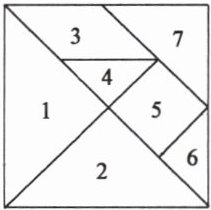 3.一只蚂蚁在如图所示的七巧板上任意爬行,已知它停在这副七巧板上的任何一点的可能性都相同,那么它停在$1$号板上的概率是