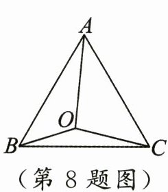 8. 如图,点$O$是等边三角形$ABC$内一点,$OA = 2,OB = 1,OC = \sqrt{3}$,则$\triangle AOB$与$\triangle BOC$的面积之和为 (