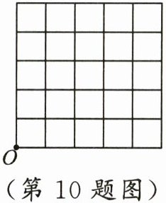 10. 如图,在$5×5$的正方形网格中,两条网格线的交点叫做格点,每个小正方形的边长均为1.以点$O$为圆心,5为半径画圆,共经过图中