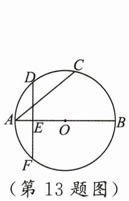 13. 如图,$AB$为$\odot O$的直径,点$D$是弧$AC$的中点,过点$D$作$DE\perp AB$于点$E$,延长$DE$交$\odot O$于点$F$.若$AC = 12,AE = 3$,则$\odot O$的直径长为