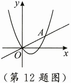 12. 如图, 抛物线 $ y = a x ^ { 2 } + b x $ 与直线 $ y = k x $ 相交于 $ O, A ( 3, 2 ) $ 两点, 则不等式 $ a x ^ { 2 } + b x - k x < 0 $ 的解集是