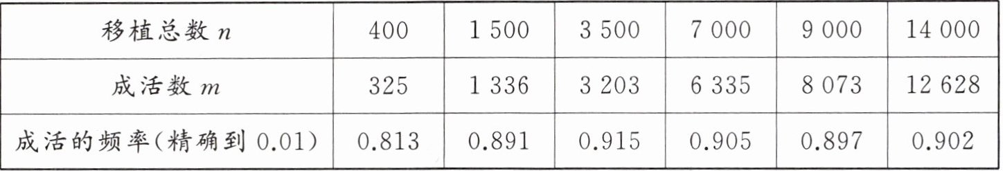 由此估计这种幼树在此条件下移植成活的概率约是.(精确到 $0.1$)