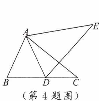 4.如图,将$\triangle ABC$绕点$A$逆时针旋转角$\alpha(0^{\circ}<\alpha<180^{\circ})$得到$\triangle ADE$,点$B$的对应点$D$恰好落在边$BC$上.若$DE\perp AC$,$\angle CAD = 25^{\circ}$,则旋转角$\alpha$的度数是