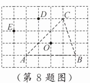 8. 如图,在5×7网格中,各小正方形边长均为1,点O,A,B,C,D,E均在格点上,点O是△ABC的外心,在不添加其他字母的情况下,把你认为外心也是O的三角形(除△ABC外)都写出来