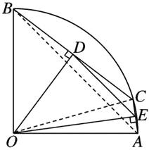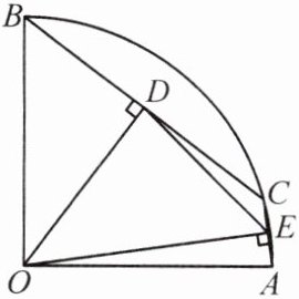 9. 如图,在半径为$5$的扇形$AOB$中,$\angle AOB = 90^{\circ}$,$C$是$\overset{\frown}{AB}$上的一个动点(不与点$A$,$B$重合),$OD\perp BC$,$OE\perp AC$,垂足分别为$D$,$E$.