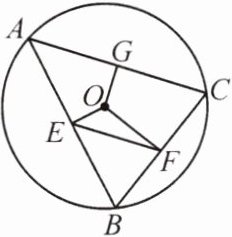 8. 如图,$\odot O$的半径是$4$,$\triangle ABC$是$\odot O$的内接三角形,过圆心$O$分别作$AB$,$BC$,$AC$的垂线,垂足为$E$,$F$,$G$,连结$EF$.若$OG = 1$,求线段$EF$的长.