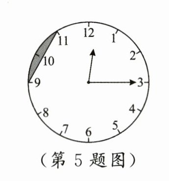 5. 如图,有一个半径为 $ 2 $ 的圆形时钟,其中每个刻度间的弧长均相等,过 $ 9 $ 点和 $ 11 $ 点的位置作一条线段,则钟面