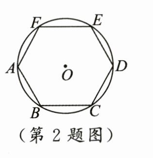 2. 如图,正六边形 $ ABCDEF $ 内接于 $ \odot O $.若 $ \odot O $ 的周长等于 $ 6\pi $,则正六边形的边长为 (