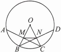 6. 如图,在$\odot O$中,$\widehat{AB}=\widehat{BC}=\widehat{CD}$,$OB$,$OC$分别交$AC$,$DB$于点$M$,$N$.