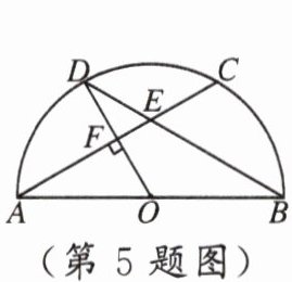 5. 如图,已知半圆$O$的直径$AB$为 3,弦$AC$与弦$BD$交于点$E$,$OD\perp AC$,垂足为$F$,$AC=BD$,则弦$AC$的长为