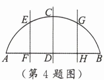 4. 如图,$AB$是$\widehat{AB}$所对的弦,$AB$的垂直平分线$CD$交$\widehat{AB}$于点$C$,交$AB$于点$D$;$AD$的垂直平分线$EF$交$\widehat{AB}$于点$E$,交$AB$于点$F$;$DB$的垂直平分线$GH$交$\widehat{AB}$于点$G$,交$AB$于点$H$.下列结论中,不正确的是 (