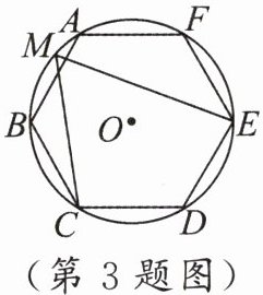 3. 如图,正六边形$ABCDEF$内接于$\odot O$,点$M$在$\overgroup{AB}$上,则$\angle CME$的度数为(