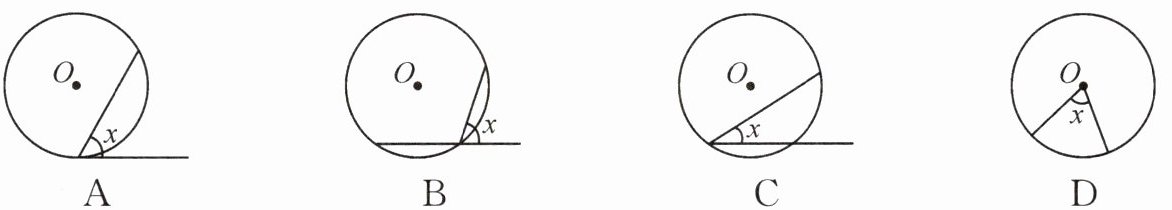 1. 下列四个图中,$\angle x$是圆周角的是(