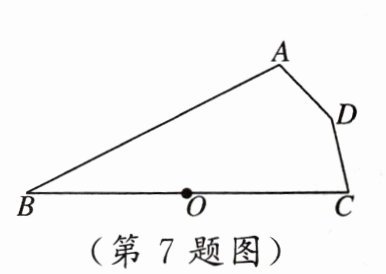 7. 如图,点 $O$ 为线段 $BC$ 的中点,点 $A$,$C$,$D$ 到点 $O$ 的距离相等. 若 $\angle ABC = 40^{\circ}$,则 $\angle ADC$ 的度数是(