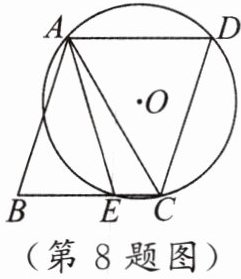 8. 如图,四边形 $ABCD$ 是菱形,$\odot O$ 经过点 $A$,$C$,$D$,与 $BC$ 相交于点 $E$,连结 $AC$,$AE$. 若 $\angle D = 70^{\circ}$,则 $\angle EAC$ 的度数为