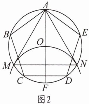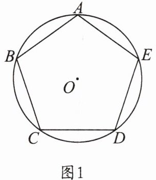 9. 如图 1,正五边形$ABCDE$内接于$\odot O$,阅读以下作图过程,并回答下列问题.作法:如图 2,