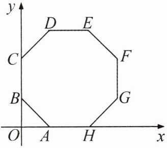 8. 如图所示,在平面直角坐标系中,多边形$ABCDEFGH$是正八边形,点$A$的坐标为$(2,0)$,点$B$的坐标为$(0,2)$.求点$E$的坐标.