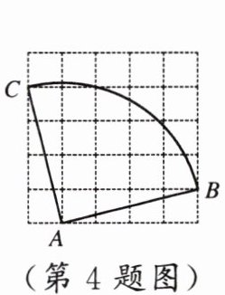4. 如图,在$5×5$的正方形网格中,每个小正方形的边长都为 1,点$A$,$B$,$C$均为格点,则扇形$ABC$中$\overset{\frown}{BC}$的长等于(