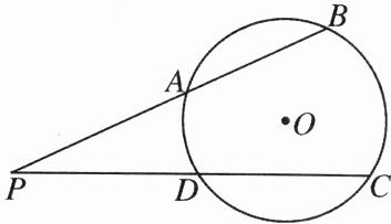 18. 如图,$ \odot O $ 的半径为 5,点 $ P $ 在 $ \odot O $ 外,$ PB $ 交 $ \odot O $ 于 $ A $,$ B $ 两点,$ PC $ 交 $ \odot O $ 于 $ D $,$ C $ 两点.