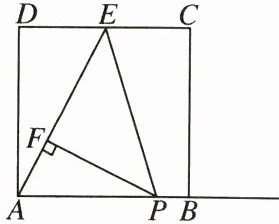 17. 如图,正方形 $ ABCD $ 的边长为 4,$ E $ 是 $ CD $ 的中点,点 $ P $ 在射线 $ AB $ 上,过点 $ P $ 作线段 $ AE $ 的垂线段,垂足为 $ F $.