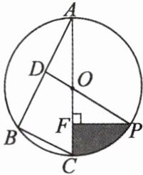 【例 2】如图,已知 $\odot O$ 是 $\triangle ABC$ 的外接圆,$AC$ 是直径,$\angle A = 30°$,$BC = 2$,$D$ 是 $AB$ 的中点。连结 $DO$ 并延长交 $\odot O$ 于点 $P$,过点 $P$ 作 $PF\perp AC$ 于点 $F$。