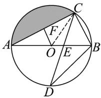 练习 6 如图,$AB$ 是 $\odot O$ 的直径,弦 $CD$ 交 $AB$ 于点 $E$,$OF\perp AC$ 于点 $F$。