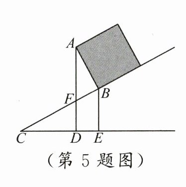 5. 如图,一只箱子沿着斜面向上运动,箱高$AB = 1.3\ m$.当$BC = 2.6\ m$时,点$B$离地面的距离$BE = 1\ m$,则