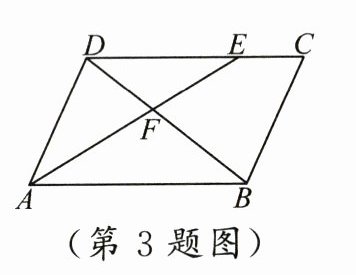 3. 如图,在平行四边形$ABCD$中,点$E$在边$DC$上,$DE:EC = 3:1$,连结$AE$交$BD$于点$F$,则$\triangle DEF$与$\triangle DAF$的面积之比为(