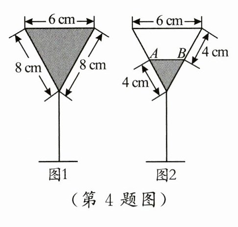 4. 图1是装满了液体的高脚杯(数据如图),用去部分液体后,放在水平的桌面上如图2所示,此时液面$AB =$(