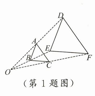 1. 如图,$\triangle ABC$与$\triangle DEF$位似,点$O$为位似中心.已知$OA:OD = 1:2$,则$\triangle ABC$与$\triangle DEF$的面积之比为(