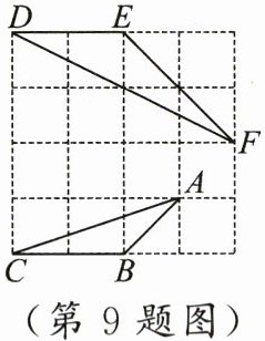 9. 如图,在正方形网格中,每个小正方形的边长均为$1$,$\triangle ABC$和$\triangle DEF$的顶点都在网格线的交点上.设$\triangle ABC$的周长为$C_1$,$\triangle DEF$的周长为$C_2$,则$\dfrac{C_1}{C_2}$的值等于