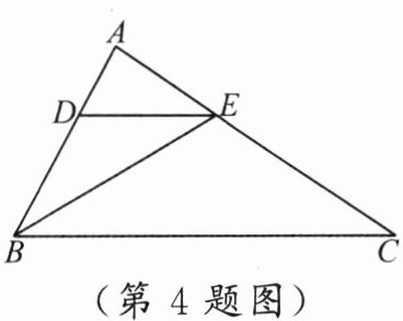 4. 如图,在$\triangle ABC$中,$BE$平分$\angle ABC$,$DE// BC$。若$DE = 2AD$,$AE = 2$,则$AC =$