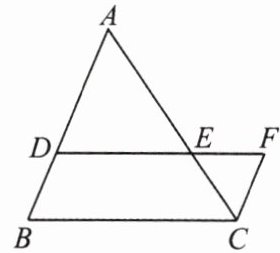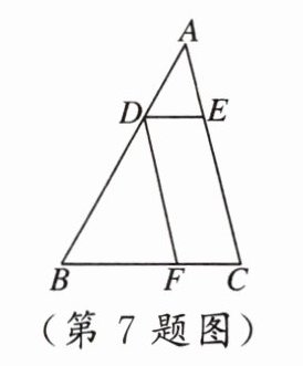 7. 如图,点$D$,$E$,$F$分别在$\triangle ABC$的各边上,且$DE// BC$,$DF// AC$。若$AE:EC = 1:2$,$BF = 6$,则$DE$的长为(