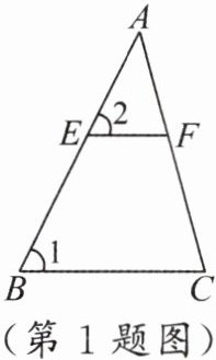 1. 如图,在$\triangle ABC$中,点$E$,$F$分别在边$AB$,$AC$上,$\angle 1=\angle 2$。若$BC = 4$,$AF = 2$,$CF = 3$,则$EF$的长为(