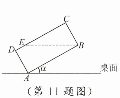 11.如图,将一个装有水的杯子斜放在水平的桌面上,其截面可看作一个宽BC=6厘米的矩形.当水面触到杯口边缘时,水面宽度BE=12厘米,此时杯子的倾斜角α等于