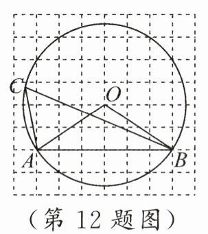12.如图,在边长为1的正方形网格中,⊙O是△ABC的外接圆,点A,B,O在格点上,则cos∠ACB的值是