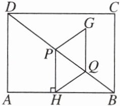 10. 如图,在矩形$ABCD$中,$AB = 4$,$BC = 3$,点$P$,$Q$在对角线$BD$上,且$BQ = \frac{2}{3}BP$。过点$P$作$PH \perp AB$于点$H$,连结$HQ$,以$PH$,$HQ$为邻边作平行四边形$PHQG$,设$BQ = m$。