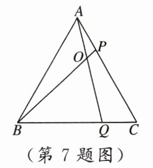 7. 如图,在等边三角形$ABC$的边$AC$,$BC$上各取一点$P$,$Q$,使$AP = CQ$,$AQ$,$BP$相交于点$O$。若$BO = 6$,$PO = 2$,则$AP$的长为