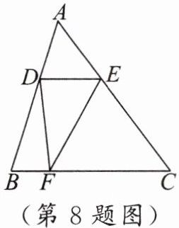 8. 如图,$D$,$E$,$F$分别是$\triangle ABC$三边上的点,其中$BC = 8$,$BC$边上的高为$6$,且$DE // BC$,则$\triangle DEF$面积的最大值为(