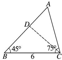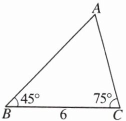 10.如图,在$\triangle ABC$中,$\angle B = 45^{\circ}$,$\angle C = 75^{\circ}$,夹边$BC$的长为 6.求$\triangle ABC$的面积.