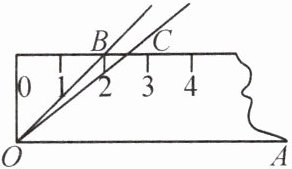 6. 如图,将 $ 45^{\circ} $ 的 $ \angle AOB $ 按图中的方式放置在一把刻度尺上,定点 $ O $ 与尺下沿的端点重合,$ OA $ 与尺下沿重合,$ OB $ 与尺上沿的交点 $ B $ 在刻度尺上的读数恰为 $ 2 cm $。若按相同的方式将 $ 37^{\circ} $ 的 $ \angle AOC $ 放置在该刻度尺上,则 $ OC $ 与尺上沿的交点 $ C $ 在尺上的读数为