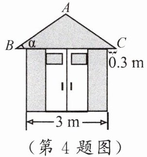 4. 某简易房示意图如图所示,它是一个轴对称图形,则坡屋顶上弦杆 $ AB $ 的长为 (