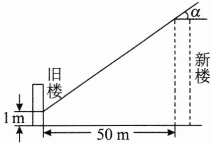 2.为了解决楼房之间的采光问题,某市有关部门规定:两幢楼房之间的最小距离要使中午 $12$ 时不能遮光.如图,旧楼的一楼窗台高 $1$ 米,现计划在旧楼右侧 $50$ 米处再建一幢新楼.若该市冬天中午 $12$ 时太阳照射的光线与水平线的夹角最小为 $\alpha$ 度,则新楼最高可建 (