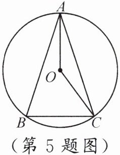 5. 如图,$\triangle ABC$ 内接于 $\odot O$,$AB = AC$,连结 $AO$,$CO$。若 $BC = 6$,$\sin\angle BAC = \frac{3}{5}$,则 $\odot O$ 的半径为