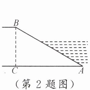 2. 如图,河坝横断面迎水坡 $AB$ 的坡比是 $1:2$,坝高 $BC = 3m$,则坡面 $AB$ 的长度最接近(参考数据:$\sqrt{3} \approx 1.73$,$\sqrt{5} \approx 2.24$)(