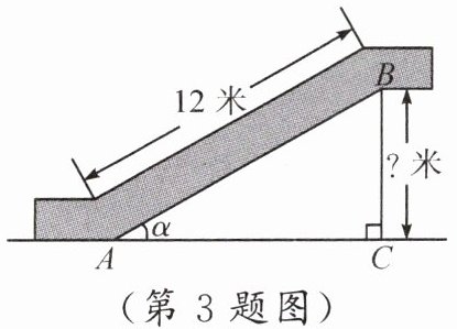 3. 如图,某博物馆大厅电梯的截面图中,$AB$ 的长为 $12$ 米,$AB$ 与 $AC$ 的夹角为 $\alpha$,则高 $BC$ 是(