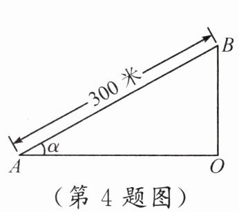 4. 如图,小刚从山脚 $A$ 出发,沿坡角为 $\alpha$ 的山坡向上走了 $300$ 米到达 $B$ 点,则小刚上升了(